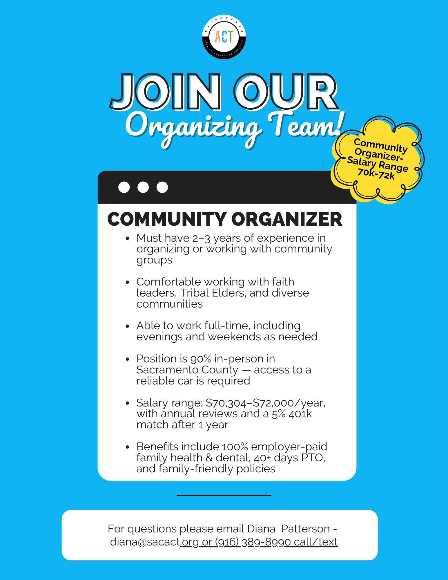 FAITH-BASED COMMUNITY ORGANIZER – Sacramento ACT. Deadline: Open until filled