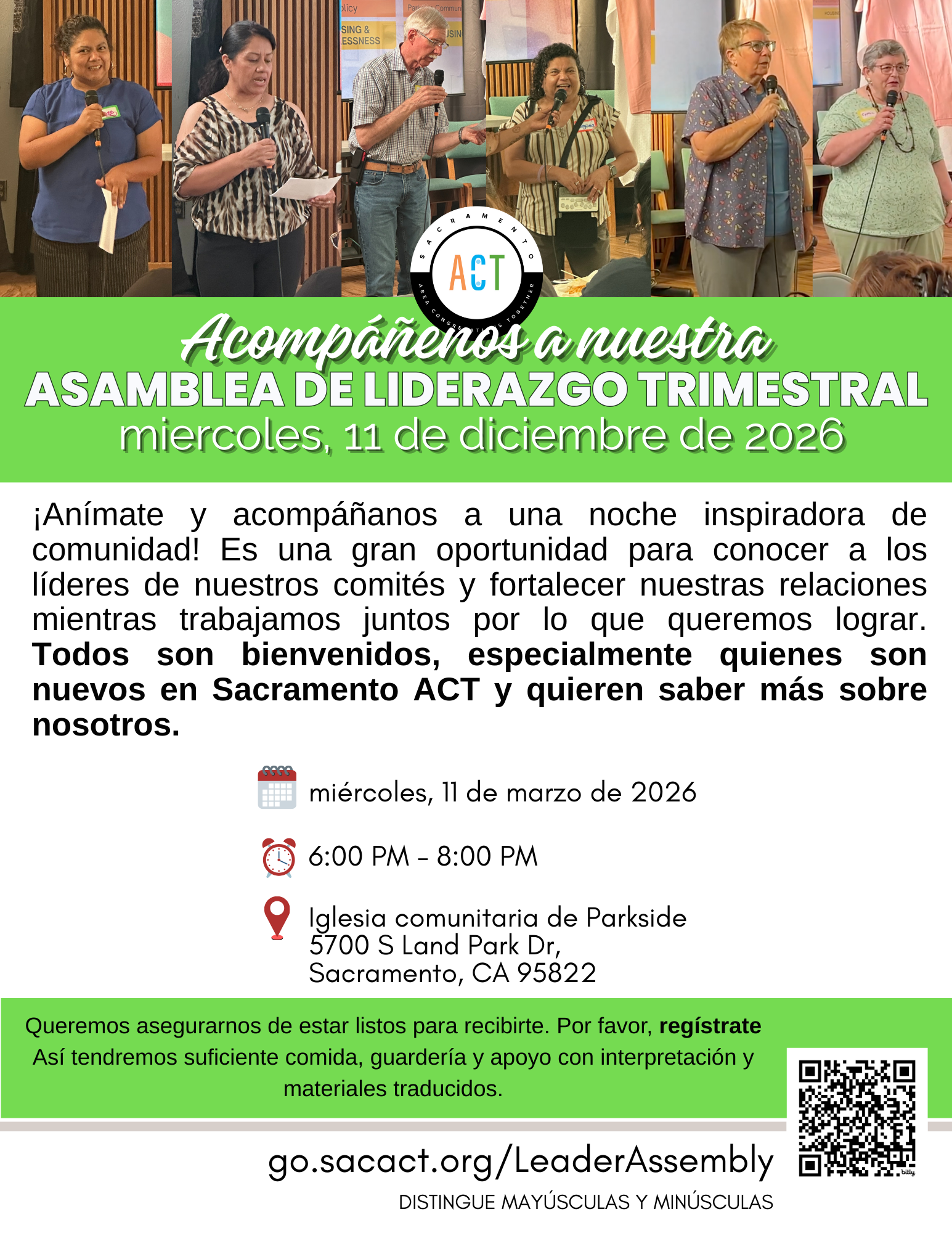 ¡No te pierdas esta oportunidad de conectar, aprender y generar un cambio real en Sacramento! Visita https://www.sacact.org/act-history para ver la lista de cambios realizados en Sacramento a través de la organización comunitaria basada en la fe.