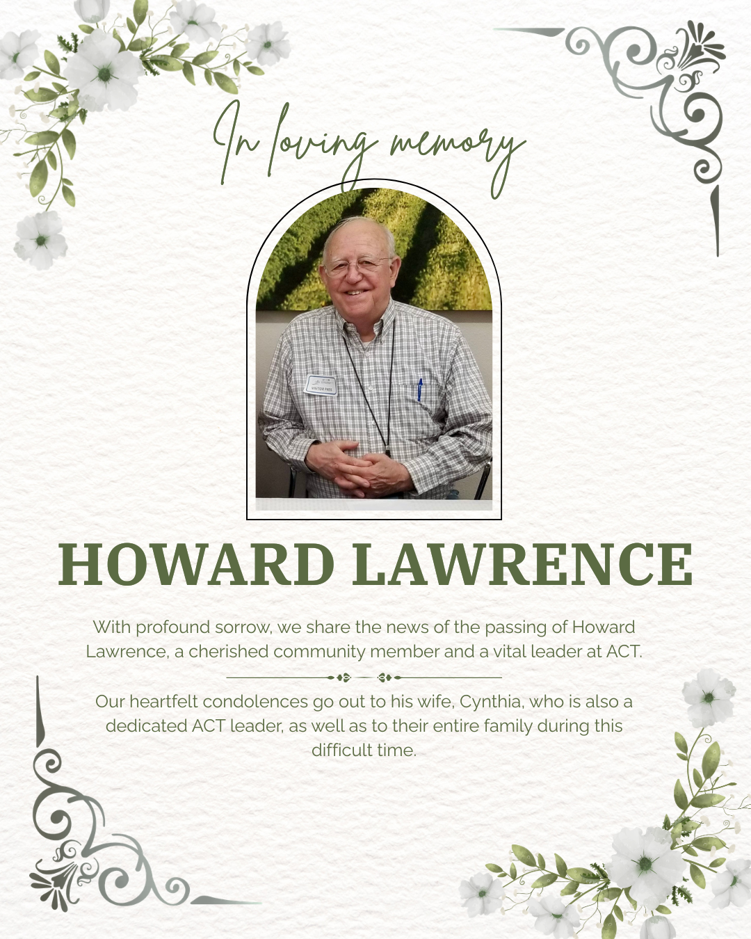 Sacramento ACT mourns the loss of Howard Lawrence, who passed away on March 12, 2026. Howard was a core ACT leader for the last three decades, served as a Board Member, and even Interim Executive Director in the mid 2010s. Howard was grounded in his Methodist faith and believed in the power of faith-based community organizing to build long-lasting change. He dedicated thousands of hours in his local organizing committee, was a strong negotiator, and led countless research and public actions. Howard built relationships with his fellow congregants, community members, labor partners, elected officials, and leaves us with a legacy longer than we can list. Howard spent his life working to improve systems in order to address inequities. Sacramento ACT and the region are better because of his work. Our deepest sympathies to his wife Cynthia (also an ACT Leader) and the rest of their family.